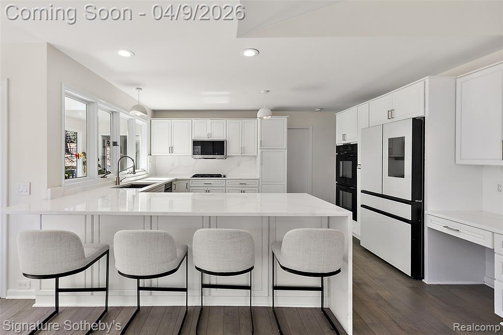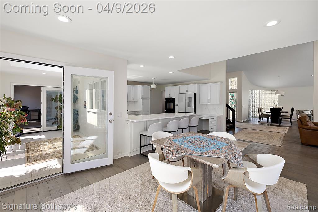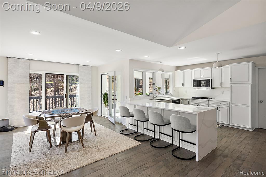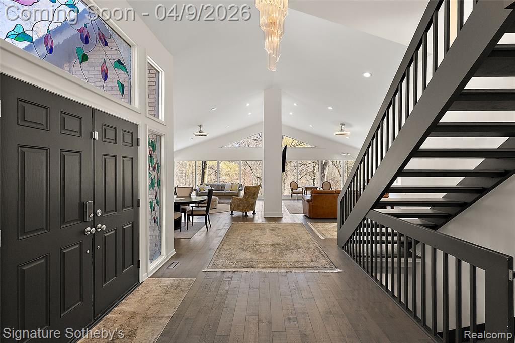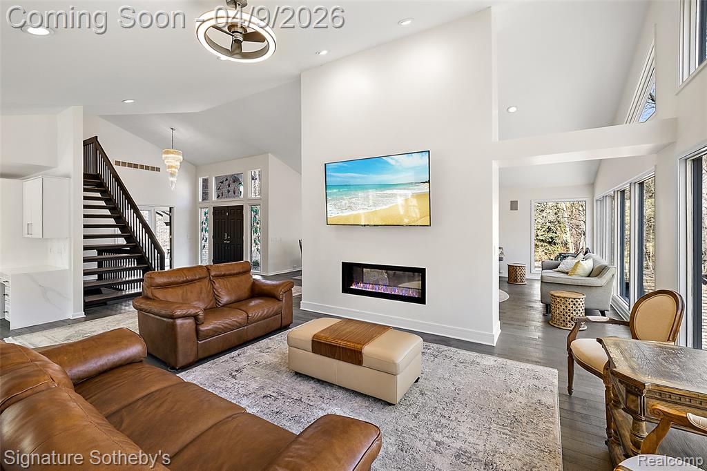 Spanning over 4,000 square feet with 5 bedrooms and 4.2 bathrooms, this completely renovated residence is set within one of Bloomfield Hills' most desirable communities, offering a refined blend of modern updates and thoughtful design. Wide plank hardwood flooring runs throughout the home, creating a cohesive and elevated interior. Designed for both everyday living and entertaining, the main level features a dramatic living room with soaring ceilings and a sleek linear fireplace, a dedicated office, and a formal dining room ideal for hosting gatherings. The fully updated kitchen showcases custom cabinetry, quartz countertops, premium stainless steel appliances, and a large island with integrated storage, complemented by a bright dining nook for casual meals. A first floor primary-suite layout provides exceptional flexibility. Upstairs, three oversized bedrooms are paired with fully updated bathrooms. The finished lower level extends the living space with a built-in bar, and a full kitchen and bath creating an ideal environment for entertaining or recreation. Exterior improvements include a new roof, refreshed landscaping, and recently updated mechanicals including a 2-year-old A/C and furnaces. Located in Bloomfield Hills, this home offers close proximity to parks, golf courses, and the vibrant shopping and dining of nearby Birmingham, providing a balance of privacy, convenience, and an exceptional suburban lifestyle. |